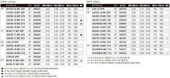 必ず実際に装着されているタイヤのチューブ、サイズ、スピードシンボル、荷重指数、タイヤ種類などをご確認の上、サイズ・パターンの選択はご使用者様の自己責任において行って下さい。