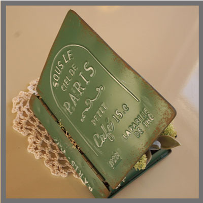 Mサイズ ブリキ製のアンティーク風カフェブックに多肉植物をおしゃれに寄せ植えしました♪