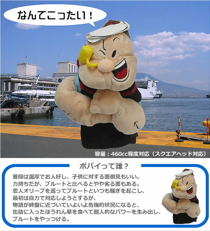 ポパイヘッドカバー ポパイって誰? 普段は温厚でお人好し、子供に対する面倒見もいい。